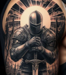 Imagens de anjos, figuras religiosas ou deuses, trabalhadas com sombras profundas e alto impacto visual. Obras marcantes com significado espiritual.
